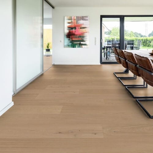 Los suelos híbridos destacan por su alta resistencia a la humedad, los impactos y los arañazos, lo que los convierte en la opción perfecta para zonas de alto tránsito y espacios que exigen un mantenimiento mínimo.